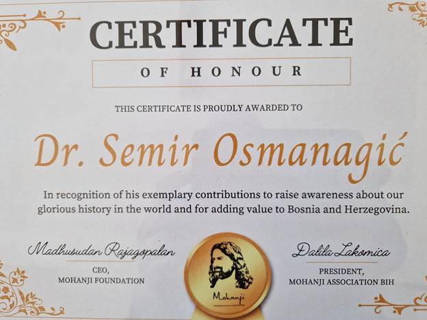 On this occasion, in the multimedia hall of the ‘Ravne 2’ park, the leader of the Mohanji movement presented the discoverer of the Bosnian pyramids, Dr. Sam Osmangich, with a special recognition of the movement for the research of true world history and support for the movement of the Mohanji Foundation.