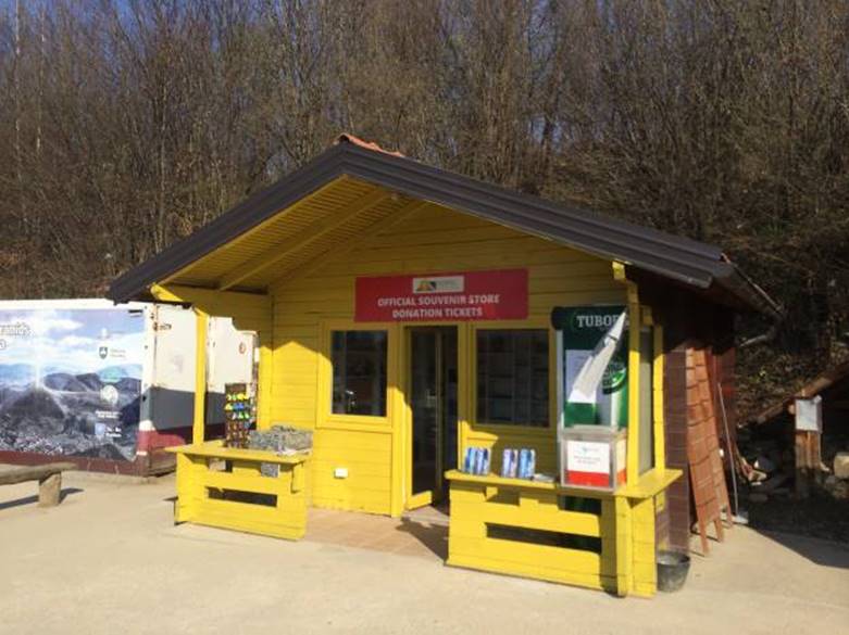 This is the popular “little house”, called like this by everyone. Sale of the tickets, books, DVDs and souvenirs is done here. The house is refreshed with the golden paint on the exterior and a new sign which marks the point of sale of the official Foundation products and the tickets.
