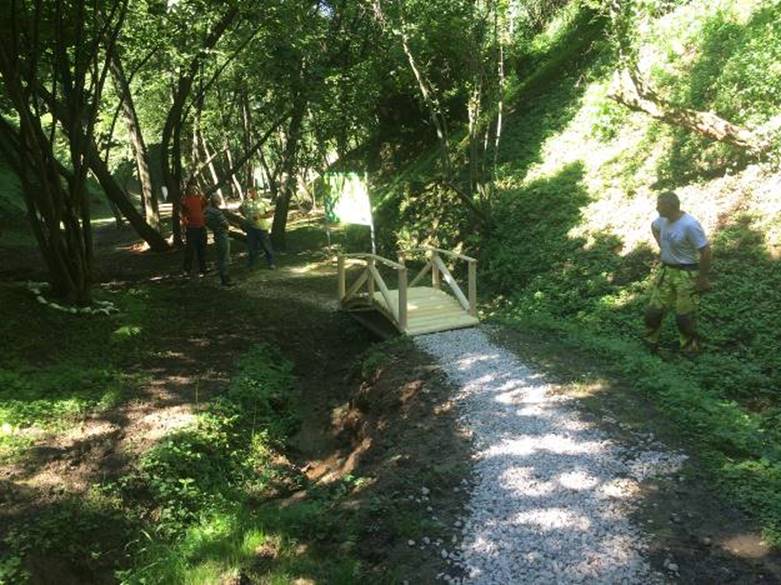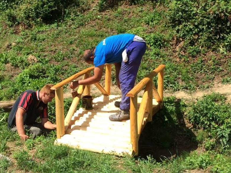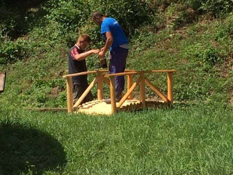 The Park “Ravne 2” is getting the new content on the everyday basis. The procurement of sixteen wooden bridges is finished at the moment. As it was the case until now, the natural materials are preferred in the Park (wood, stone). The workers of the “Archaeological Park: Bosnian Pyramid of the Sun” Foundation have protected the bridges with the wax/polish coating and installed them on different Park spots, over the spring in both valleys.