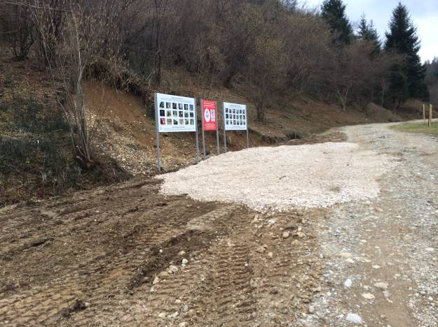 The location for the spheres is prepared, the buffer material is placed, as well as the posters with the images of the stone spheres around the world.