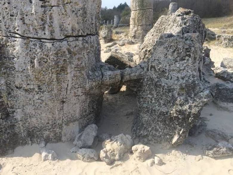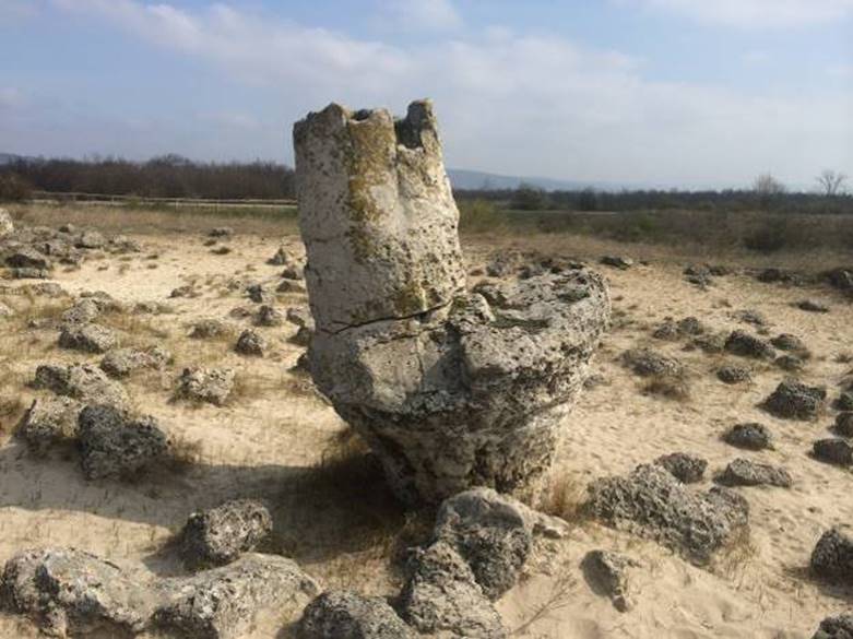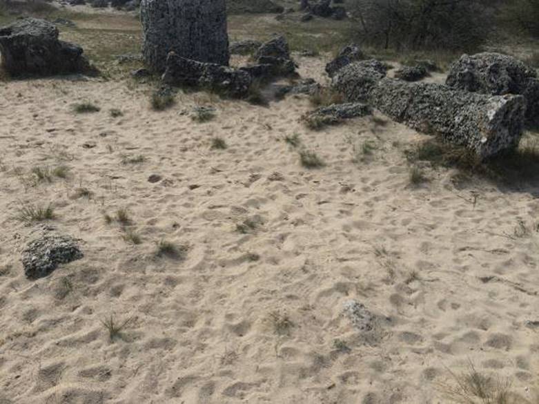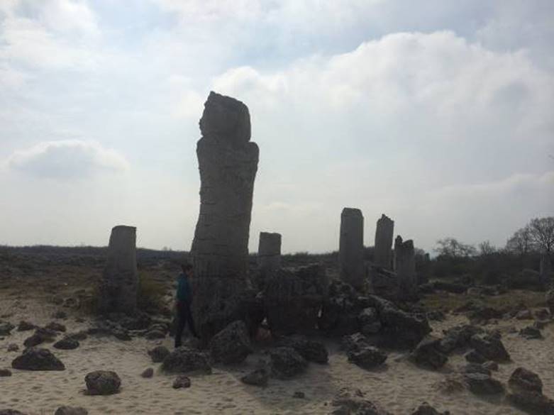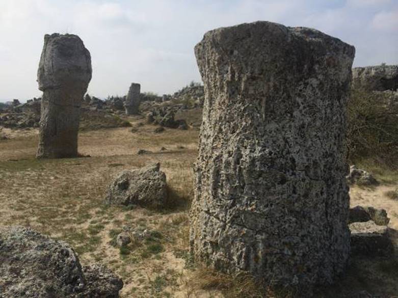 During the time before the time, everything was covered by the ocean. The water withdrawal was slow. The rocky ground remained and the stone masses were in the sand. First people came here the long time ago, much before Thracians, between 20.000-30.000 years ago. The community grew. This place attracted them. They started shaping these rocks. Not using the metal or wooden tools, using the stone instead. They’ve searched for the stone hard enough to shape the limestone. With great patience and stroking the rock, they’ve shaped the irregular rocks into regular, round pillars. The tallest pillars they’ve shaped standing on piled stone blocks.