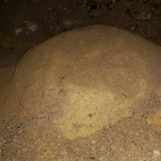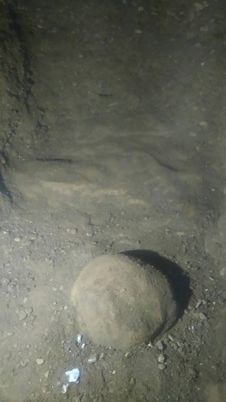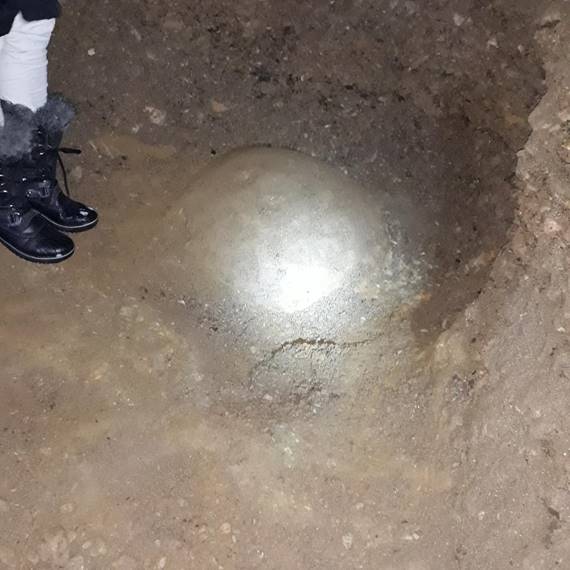 After fifteen meters in the Healing Tunnel, the first round sandstone block was found, and in the continuation a somewhat larger uneven block on the floor. The direction of the tunnel is towards the south and the Bosnian Pyramid of the Sun.