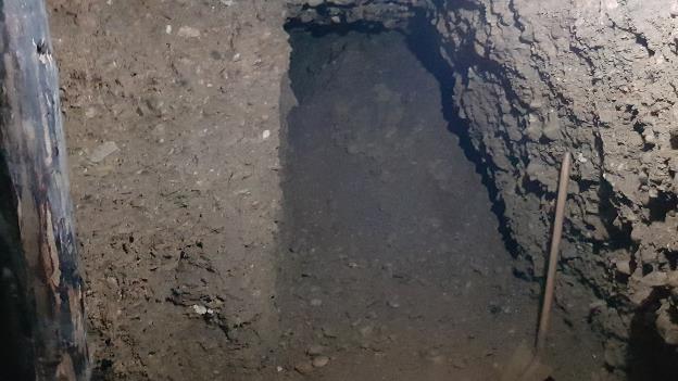In summer 2017, there has been a discovery of a tunnel with water, which stretched 70 meters in the south direction. At the end of this tunnel, there was an extension found, but it was filled with gravel material. The Foundation’s team decided to reach this section of the tunnel by (1) filling-in the portion of the water tunnel with gravel, and (2) to bypass the other section of the tunnel with water by another parallel tunnel. In the beginning of January 2018, the Foundation’s workers reached the former end of the tunnel and started to clear out the filler material.