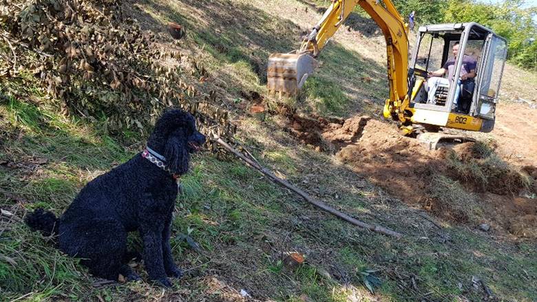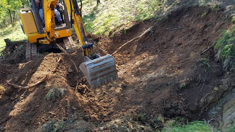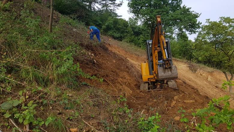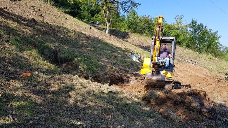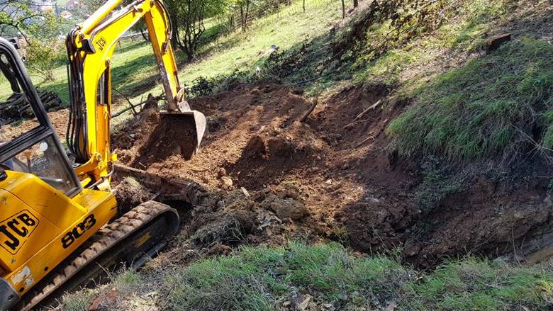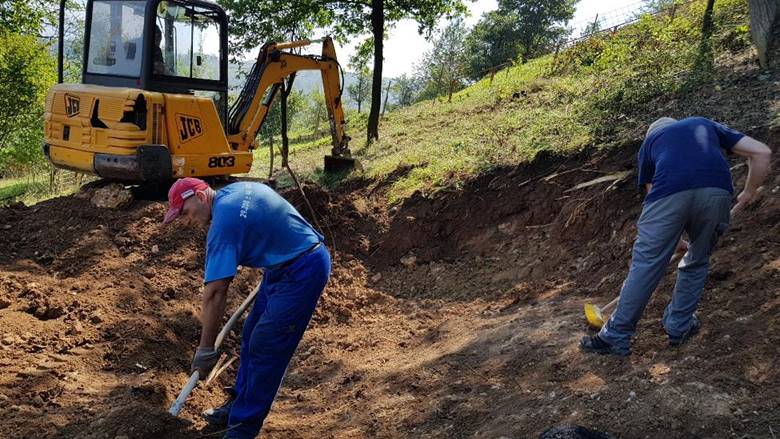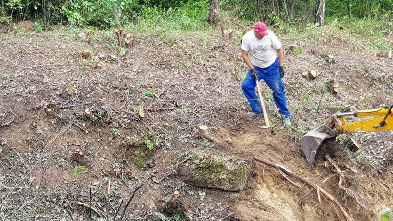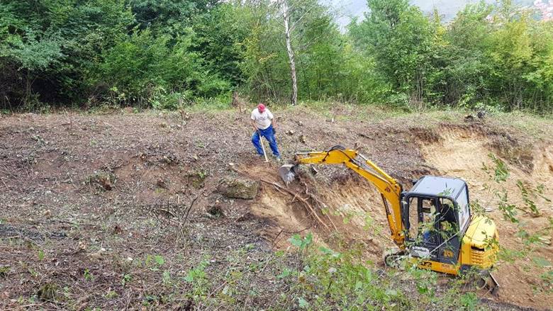 The team of the Foundation ‘Archaeological Park: The Bosnian Pyramid of the Sun’ cleared the newly acquired parcel at the foot of the northern side of the Bosnian Pyramid of the Sun. Over the past days, with the combination of excavators and human work, the surface layers of earth and clay are removed in search of preserved concrete blocks of the pyramid.