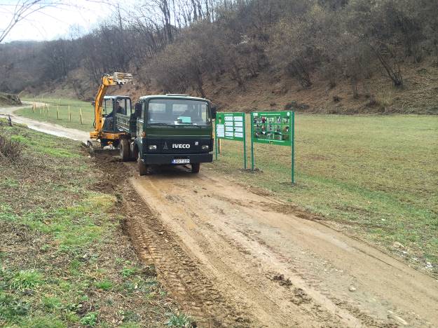 The long and cold winter followed by low temperatures and rapid warming led to the landslide on several sites at the “Archaeological-Touristic Park Ravne 2”. The water drainage channels were clogged most of the way, therefore with the snow melting, the priority was to establish proper water drainage of the entire Park.